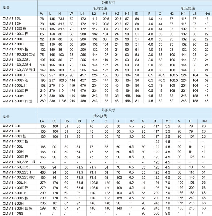 ◇ For example: order XMM1-225L,180A, four poles, with undervoltage and auxiliary function, quantity 10 units order indicated as: XMM1-225L/4370, 180A, 10 units.