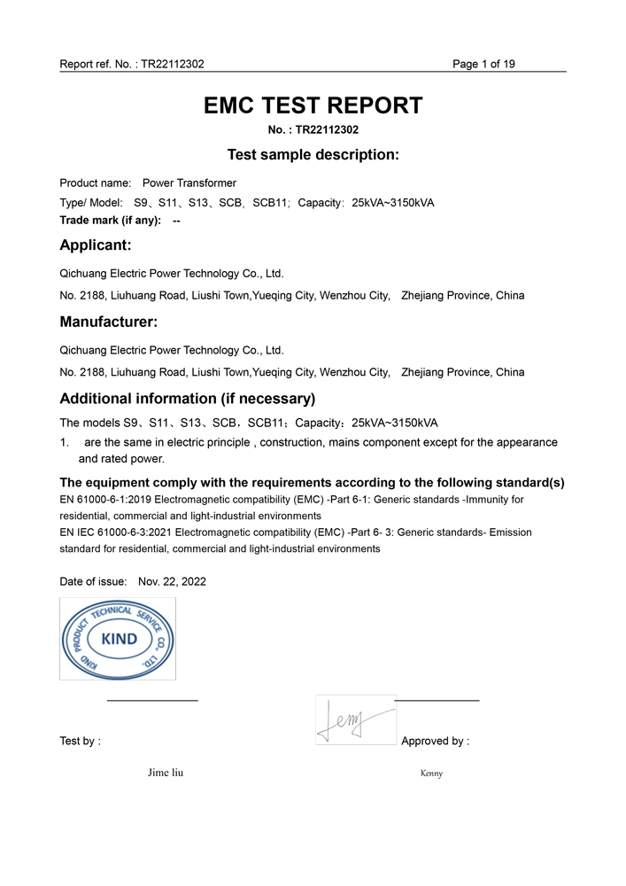 Transformer CE test report